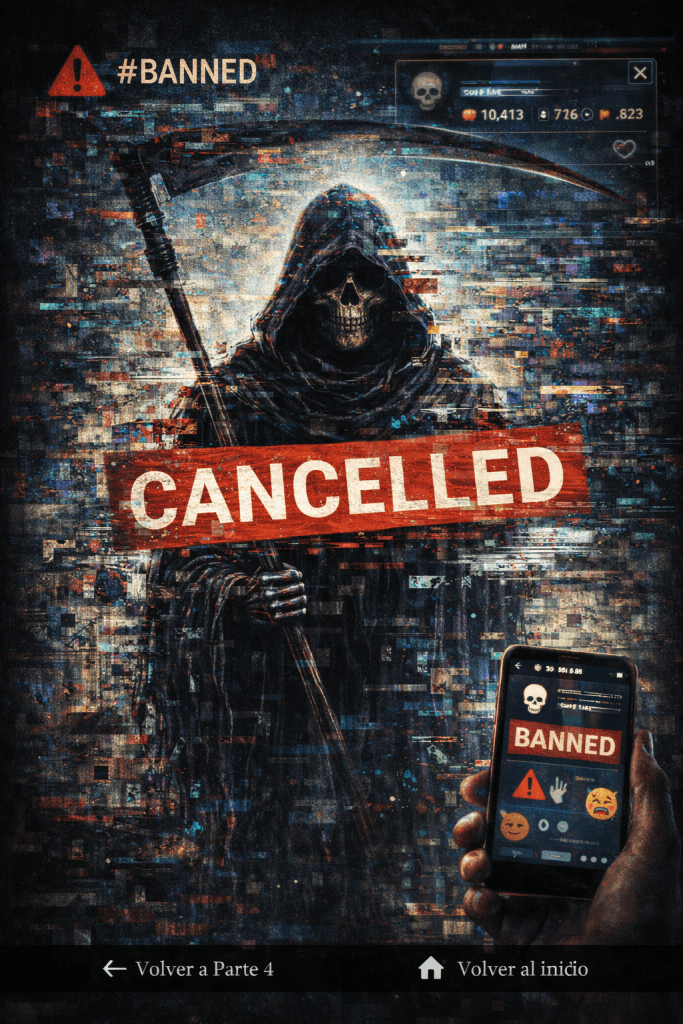 Con esa reflexión sobre la postmodernidad regresó a su labor cotidiana. La hibridación entre los géneros le había abierto una gran cantidad de posibilidades, pero también le había abierto un flanco demasiado amplio. Finalmente, había tenido que sucumbir al impulso tecnológico y había desarrollado una nueva metodología en la que podía empujar a los escritores hacia la muerte a través de troleos y dislikes en redes sociales. De hecho, el día anterior le había parecido bastante productivo y hoy esperaba terminar con un caso particular, a través de un último troleo en X. Por eso respiró hondo, se sacudió de la mente los recuerdos que le habían estado entreteniendo durante toda la mañana y apretó la tecla de enter para que el ordenador subiera y comenzar a conectarse en las redes. Conectarse no fue difícil. Después de todo le habían provisto de una máquina lo suficientemente potente como para realizar su compleja labor. Sin embargo, la sorpresa que experimentó al tratar de entrar en las redes fue algo que no había sentido a través de su existencia milenaria. Su troleo había sido denunciado y se había creado todo un movimiento en su contra a través de las redes sociales. Había sido denunciada como “promotora de discursos de odio”, “violenta e incitadora de violencia” y de bullying. Todas sus cuentas habían sido baneadas y se había declarado su cancelación.