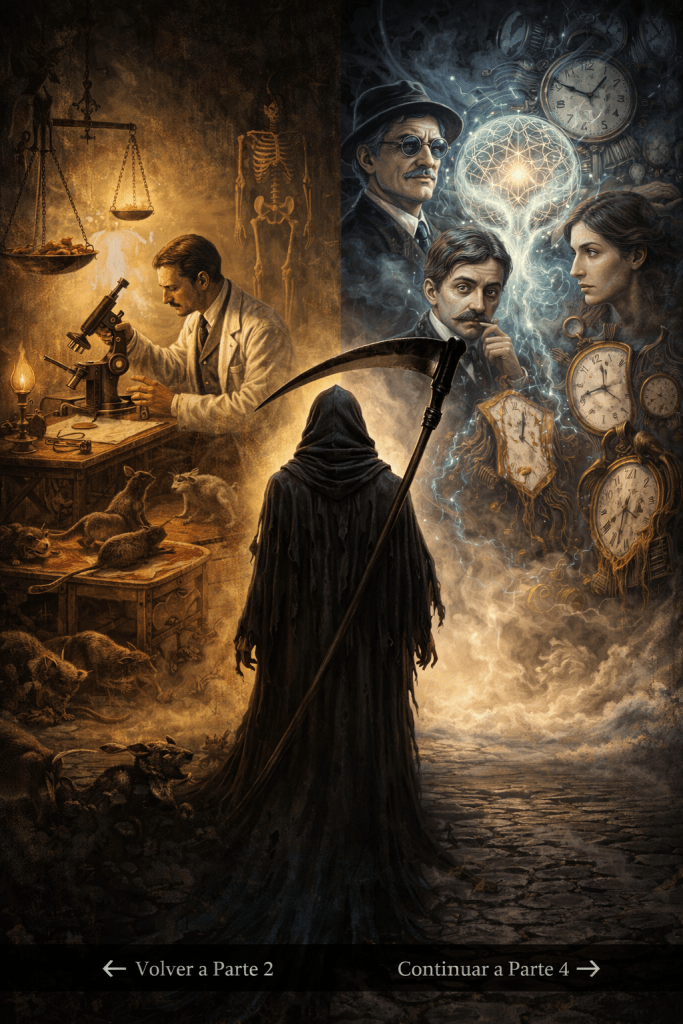 Balzac, Zola y Pérez Galdós tampoco le resultaron desagradables. Siempre disfrutó de esa frialdad con la que pretendían describir, de manera tan minuciosa, una realidad que consideraban determinada e inflexible. Se reía a mares de la rigidez de los tipos sociales que presentaban en sus obras, especialmente por las pretensiones científicas con las que los naturalistas se sumergían en razonamientos darwinistas. Por eso disfrutaba tanto de susurrarles al oído la acusación de que eran esencialistas, sabiendo que el término les resultaría tan ajeno que sólo los sumergiría en una confusión anacrónica, imposible de entender para ellos. Sin embargo, no pudo dejar de agradecerles esa relación con la construcción de identidades regionales y nacionales, que luego le hicieron más fácil la masificación de la muerte en el siglo XX.